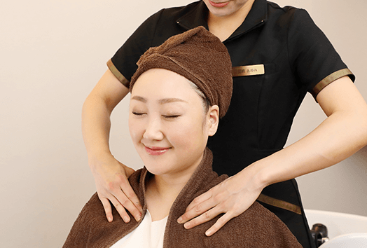 頭から首、肩にかけてやさしくリンパの流れを促進します。